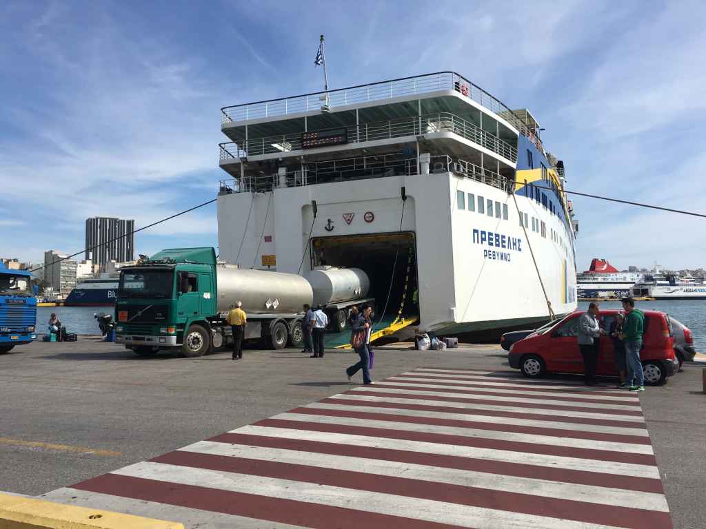 We made our way back to the hotel, grabbed the luggage and checked out. Before doing so Chantal made contact with our hotel in Santorini and they confirmed they would be picking us up around 3am the next day to take us from the Santorini port to the hotel. And they were looking at getting us checked in to our room around that time as well (super impressed with them!). We grabbed a taxi to Piraeus, a more industrial area with the main port for boats and ferries coming in and out. It’s here that we’d be departing for Santorini at 6pm.