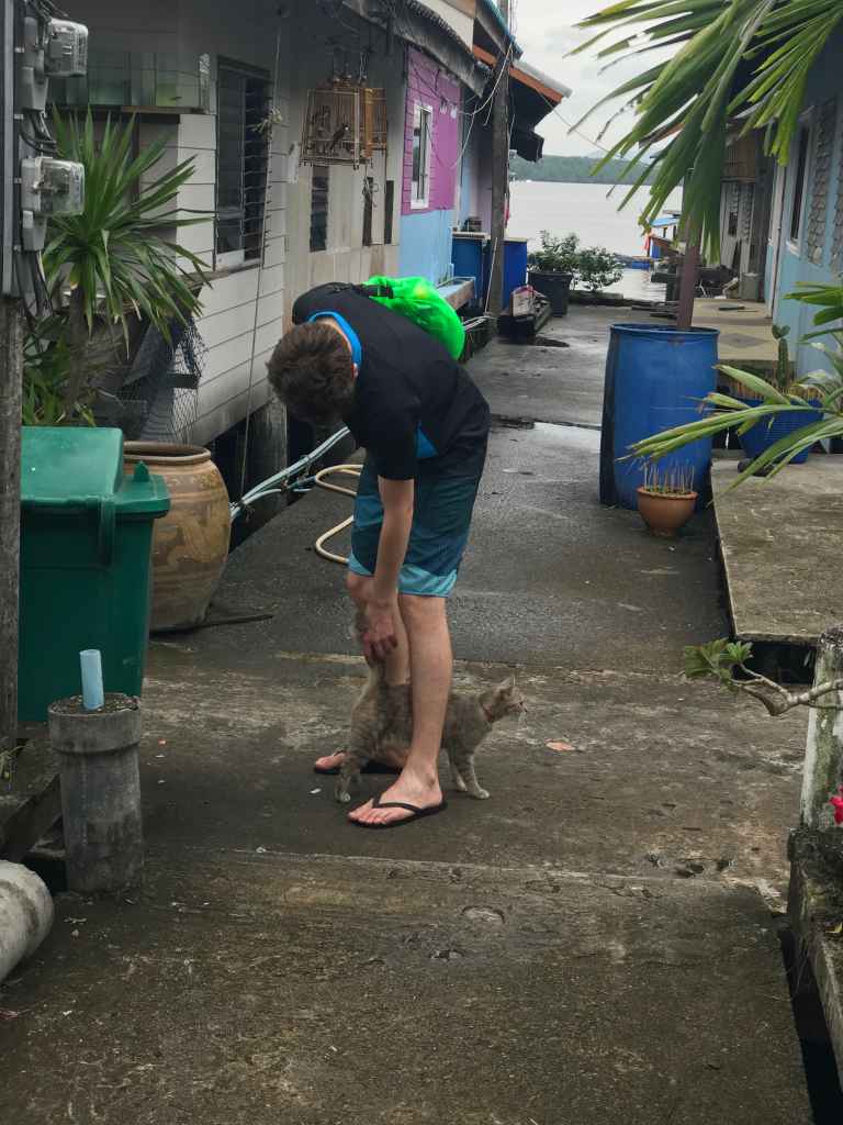 Chris with a cat at Koh Panyi.