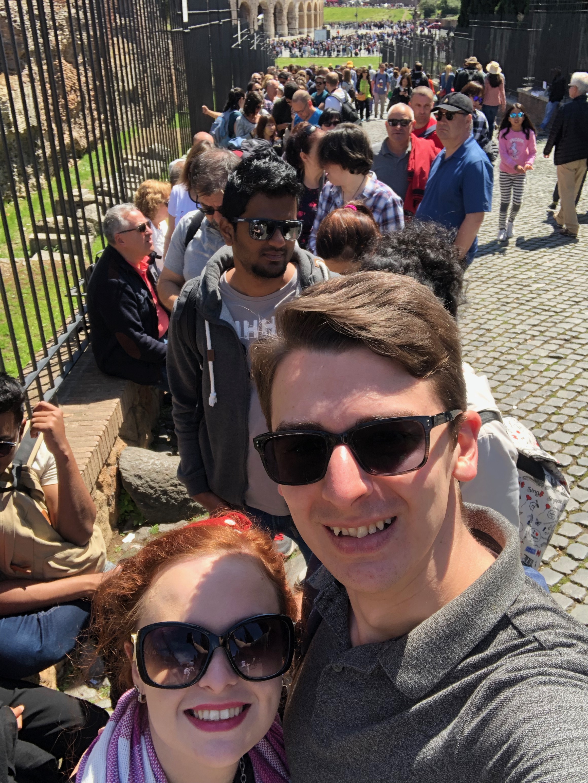 We arrived outside the Roman Forum and Palatine Hill to realise that the lines were much longer than we thought they’d be. We were waiting for about 30-45 minutes in line in the sun (Chris got a little sunburnt here) before making our way inside. We didn’t know too much about the Roman Forum and Palatine Hill beforehand but the experience was great regardless. Giving something a name such as “hill” gave us the impression of something quite small but the entire area to explore was enormous. We spent a little over two hours at the Palatine Hill and Roman Forum, and there was still plenty that we didn’t explore or areas that we rushed through.