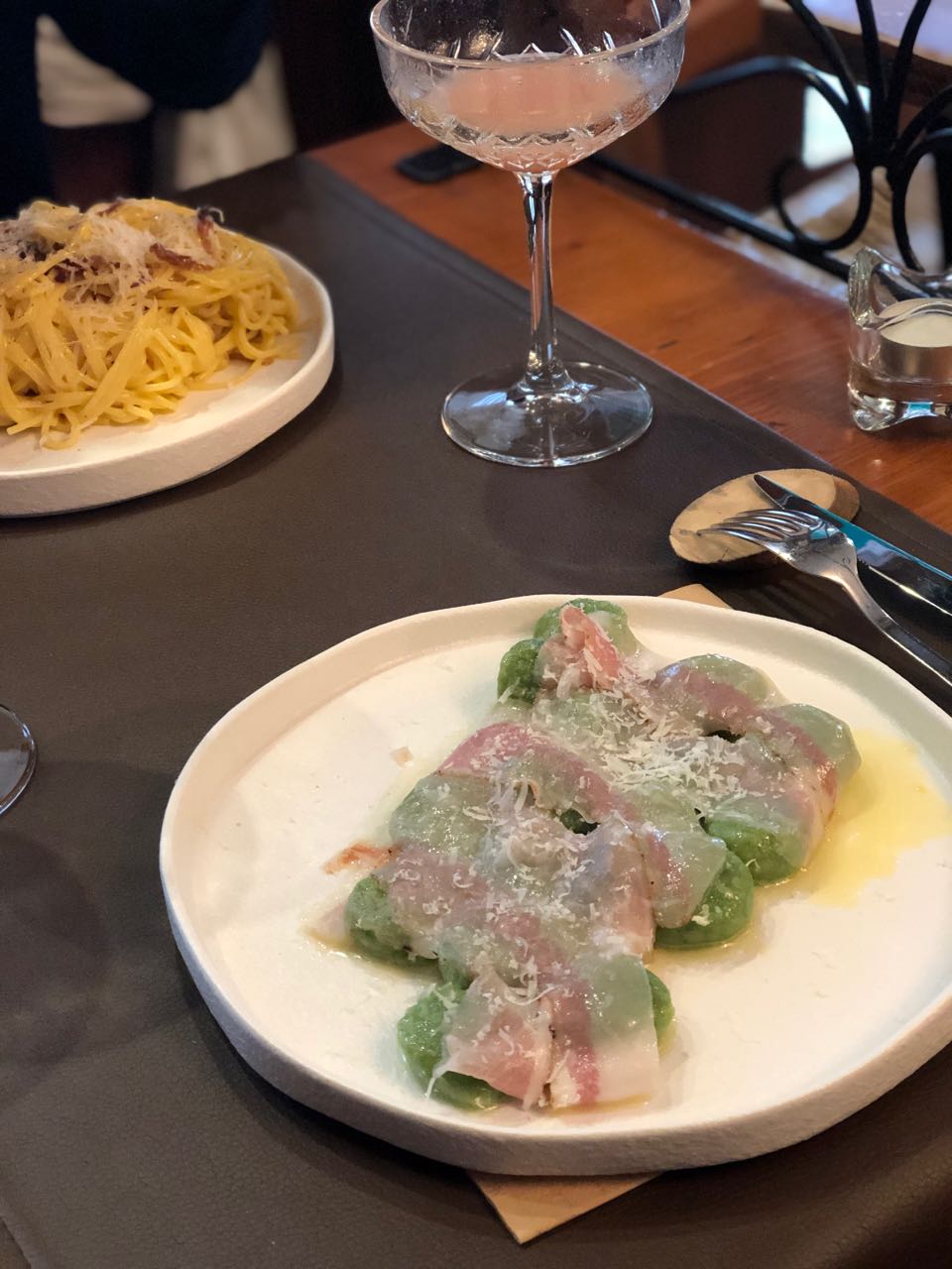 We did however spend enough time to browse a couple of merchant stores, warm ourselves with coffee at a bar, and enjoy a beautiful pasta lunch. Chantal had gnocchi with nettle butter and Chris had Carbonara, both of us tried Bellinis for the first time.