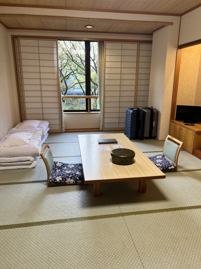 The afternoon spent in this beautiful city was used making the most of the gorgeous sunset over the bomb dome, opposite our hotel. The hotel – Hiroshima no Yado Aioi – is a traditional inn. We were greeted with kindness and the staff took our bags up to the room. They explained the protocols and gave us a gift!