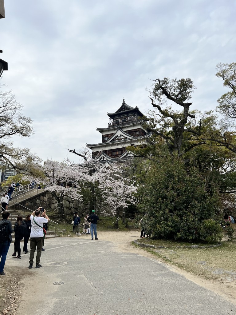After a delicious lunch that refuelled us in mind and body, we embarked on further exploring Hiroshima and headed towards the castle. Along the way we saw a cat cafe (Cat Cafe Moff) and there was some kind of food festival happening. Once we got to the castle we admired the gardens and found some ice cream. After this, we walked back to the shopping district to admire the underground shops and multi-level department store.