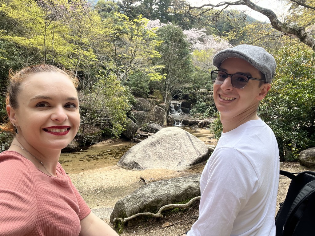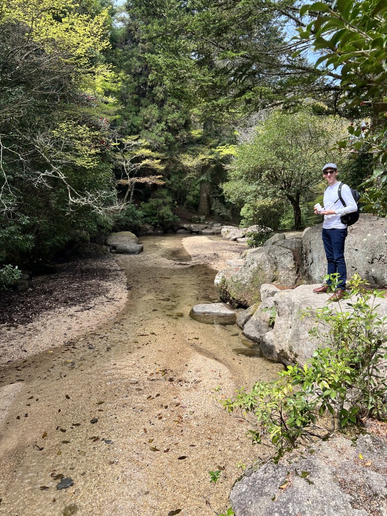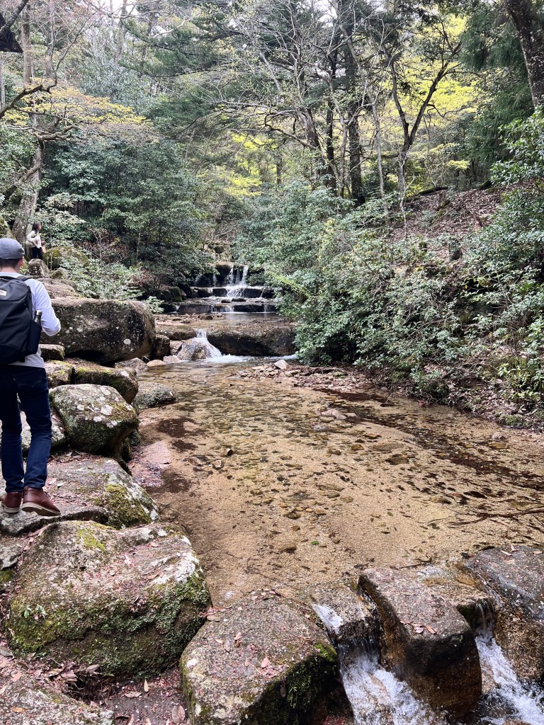 We continued on and visited a few shrines before taking the less-populated trails across beautiful gardens and streams. It was truly beautiful seeing the cherry blossoms blowing across the paths in the wind. While this wasn’t a very long hike, it was one of the most beautiful and peaceful places to walk around. Very few of the tourists ventured this way, and we were grateful for the serenity.