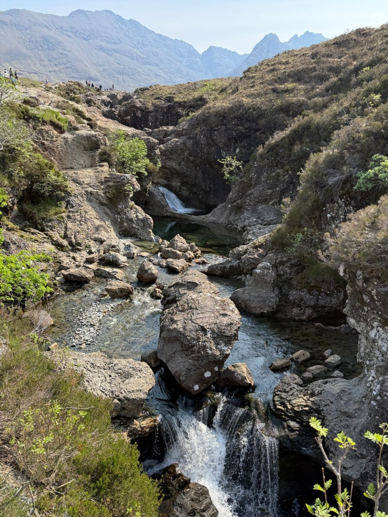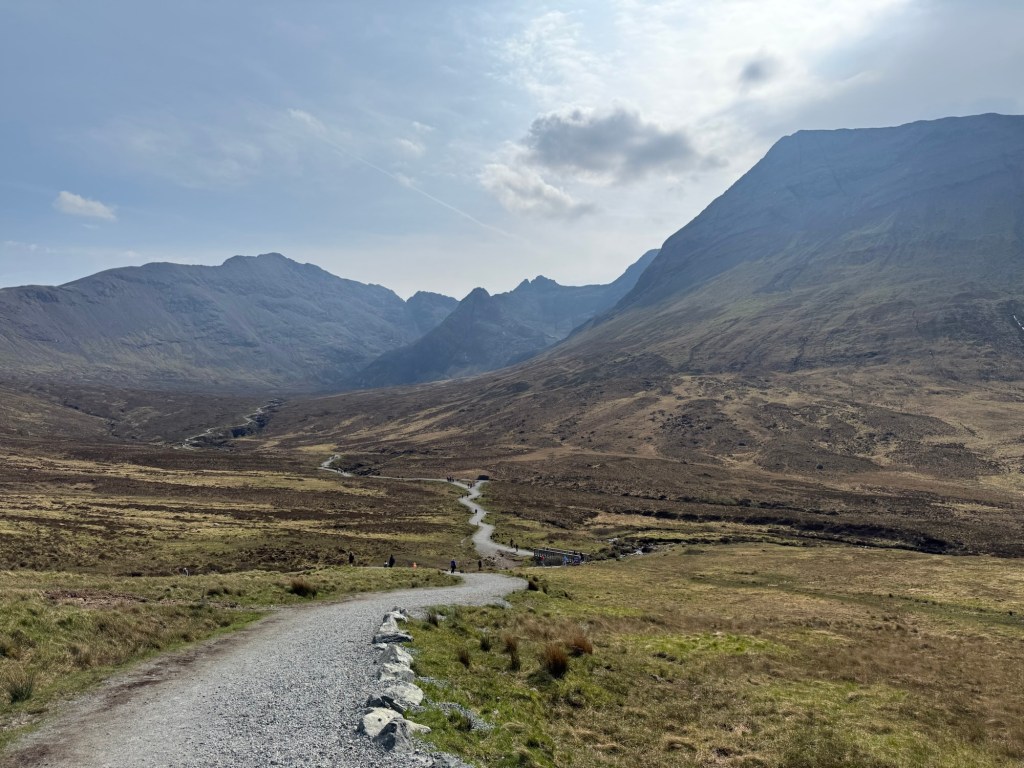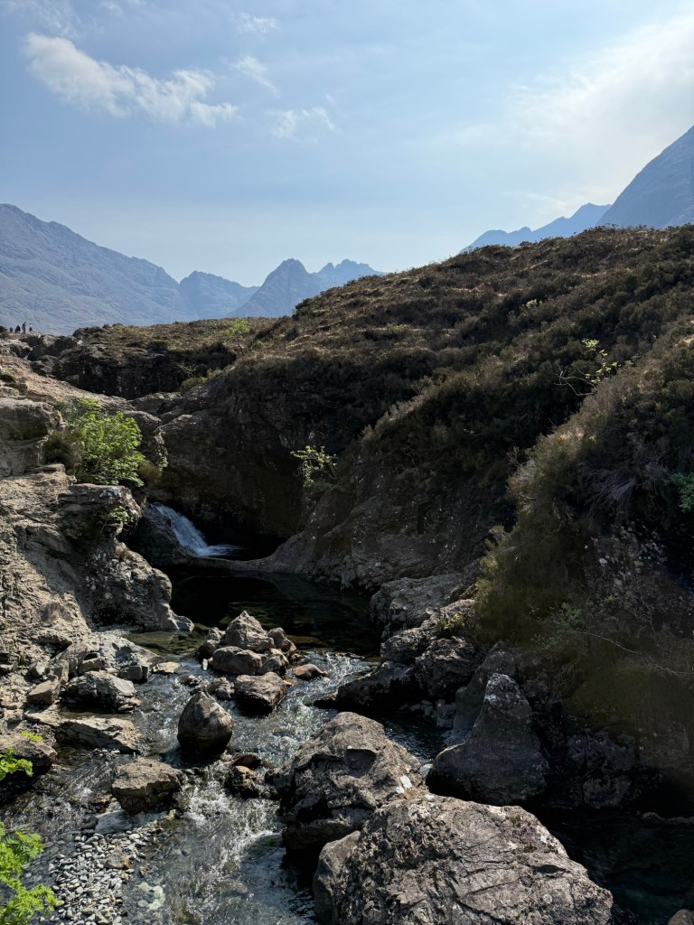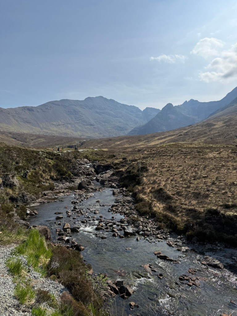 On our first full day at Isle of Skye, we packed a lunch of sandwiches and went on the moderate hike at the Fairy Pools. This is a beautiful area between a number of famous mountains on the Isle of Skye. Given its beauty, it is said to be occupied by fairies.