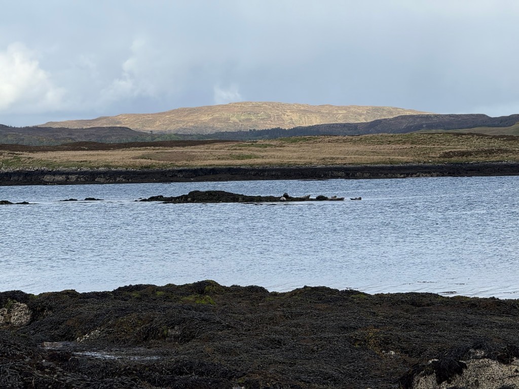 When we finally got back to An Clamhan, we were greeted by seals! Okay, so that’s not entirely accurate. As An Clamhan overlooks a sea loch, there is an outcrop of rocks in the centre of the loch that’s only visible when the tide is out. Seals like to lounge on these rocks and that’s just what we were able to see.